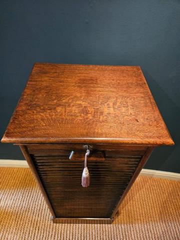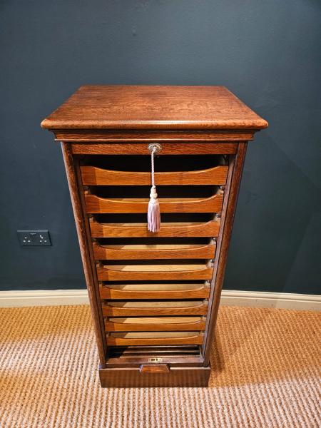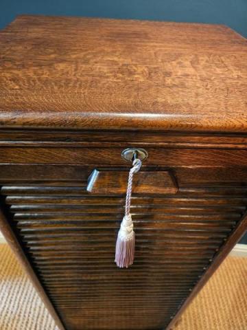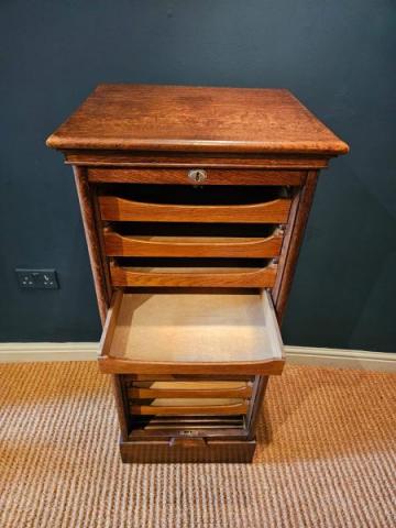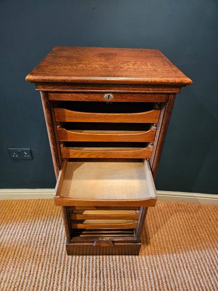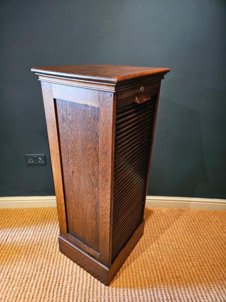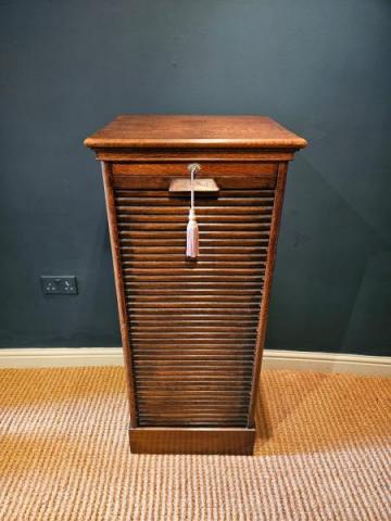 Antique Edwardian Oak Tambour Front Filing Cabinet at Sturmans Antiques furniture for sale
