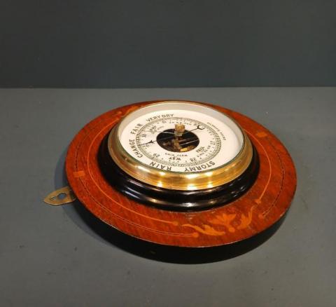 Edwardian Rosewood and Fruitwood Inlaid Aneroid Barometer