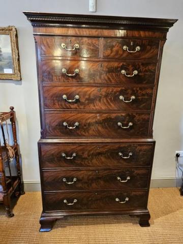 Antique George III Mahogany Secretaire Chest on Chest at Sturmans Antiques furniture for sale