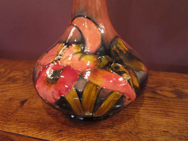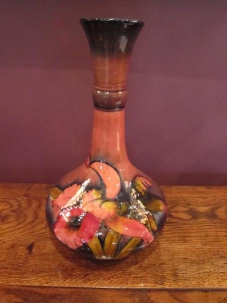 A Moorcroft flambe glazed Slipper Orchid vase. Signed William Moorcroft and stamped 'Potter to the Queen'.c.1928-36. Exhibition hole to the base. Measures 8" diameter x 13"high.Stock no.25270.
