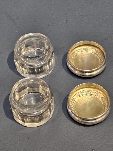 Antique Pair of Silver and Enamel Dressing Table Jars by Turner & Simpson of Birmingham