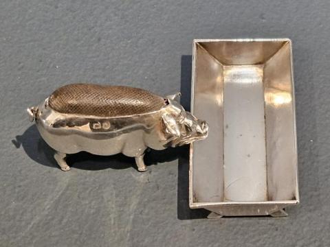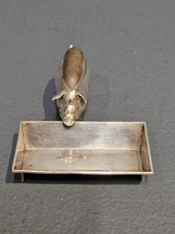 Rare Silver Pig and Trough Pin Cushion and Needle Tray