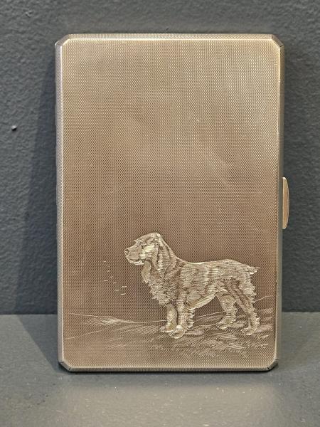 Antique Silver Cheroot Case Engraved with a Spaniel at Sturmans Antiques