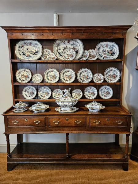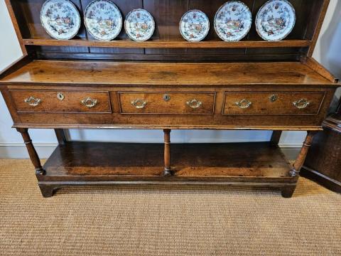 Antique Superb George III Oak Country House Dresser and Rack at Sturmans Antiques furniture for sale
