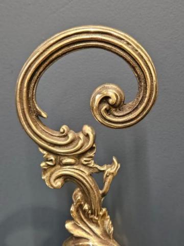 A heavy quality Victorian solid brass cherub design door stop c.1885. Rounded front to the heavy cast brass base for stability. Cherub sat above surrounded by grape vines with scroll design decoration and complementing scroll loop handle to the top. Presented in excellent condition with a deep shine and very heavy. Measures 8.5" wide x 2.5" deep x 19.5" high. Stock number 43128.