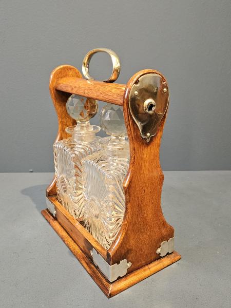 Antique Victorian Oak and Silver Plated 2 Bottle Tantalus at Sturmans Antiques tantalus for sale