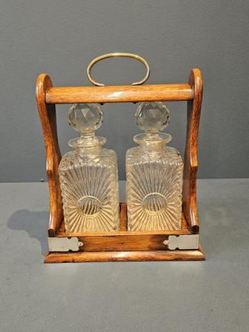 Victorian Oak and Silver Plated 2 Bottle Tantalus