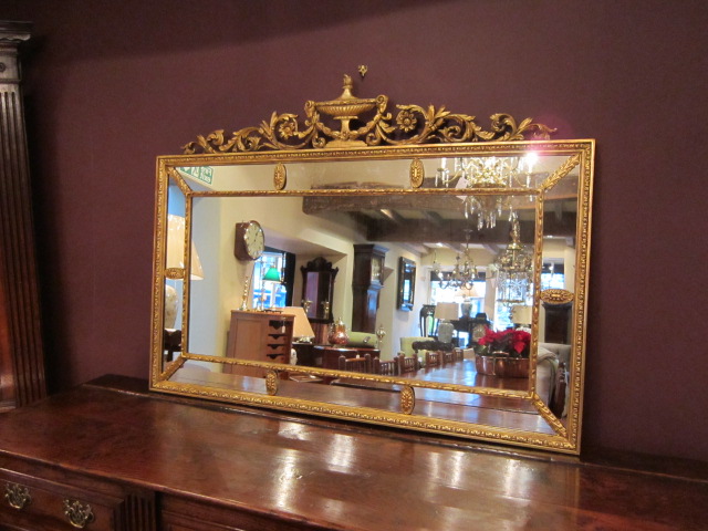 A Fine 19th Century Adams style timber and plaster gilt wall mirror.c.1880. Segmented mirror with urn decorated to the top. Moulded edge decorative surround and pateras to the segments. Original quarter plate mirror glass. Superb original condition and style. Measures 48" x 35" x 2"deep.