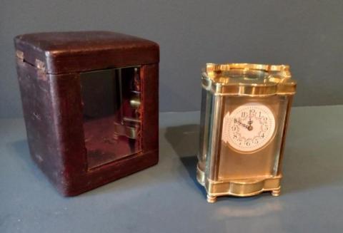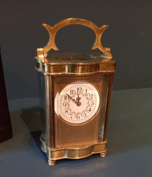 Fine Antique Serpentine Shaped Carriage Clock in Case