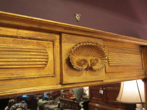 An Impressive Regency period timber gilt overmantle wall mirror.c.1830. Reeded pilasters to the sides and shell decoration to the moulded cornice top. Original mirror glass in very good condition. Measures 45" x 35"high x 3.5"deep. Stock no.24687.