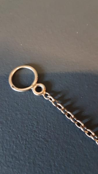 A rare Edwardian period silver tea infuser with matching chain and loop handle, hallmarked Chester 1901. The spherical hinged opening infuser with decorative piercing to allow the tea to infuse. Matching chain and small loop handle to allow the infuser to be removed from the water. The infuser opening to reveal an unused interior. Bears the makers mark for highly regarded silversmith James & William Deakin. Presented in immaculate unused condition. Measures 1.25" diam infuser x 5.5" long chain and loop handle. Stock number 37970.