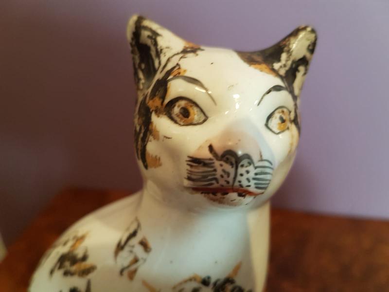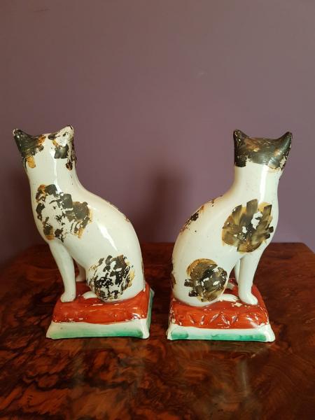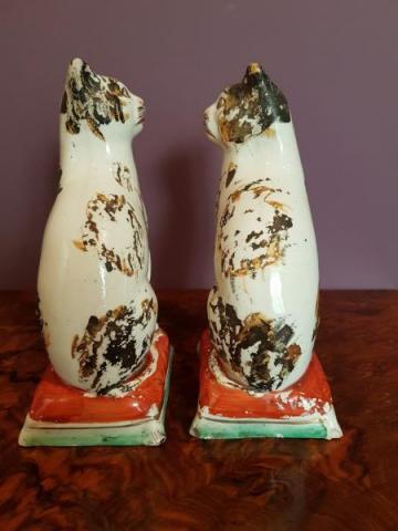 Rare Matching Pair of Antique Staffordshire Pottery Cats