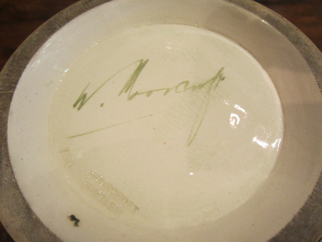 A Stunning Moorcroft 'Spanish' pattern twin handled vase.c.1913. Signed William Moorcroft and stamped Burslem to the base. Superb rich colours to the surround on an ochre ground. Decorated to the inside of the flared top. Superb piece in excellent condition. Measures 6"diameter x 10.5"high, 8.5"widest handle to handle. Stock no.27607.