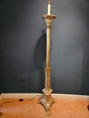 Antique Superb Edwardian Gilt Brass Lamp Standard at Sturmans Antiques Lamp for sale