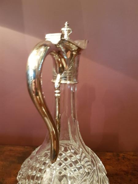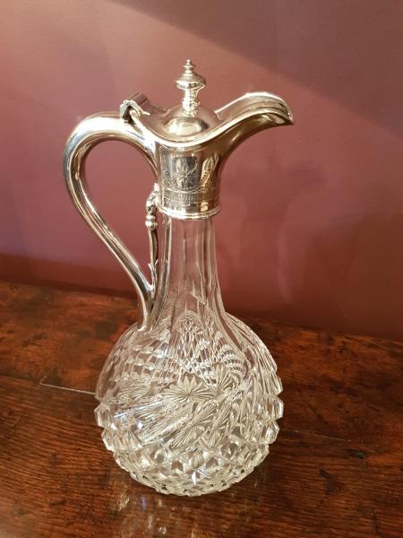 Victorian Cut Crystal and Silver Plated Mount Claret Jug