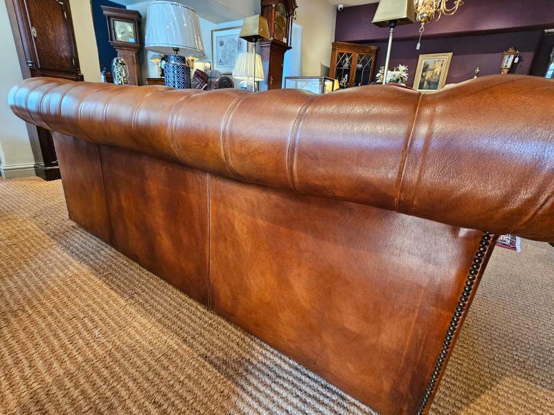 Vintage tan leather Chesterfield Sofa at Sturmans Antiques upholstery chairs for sale