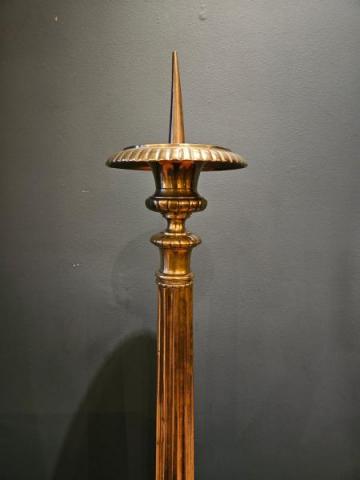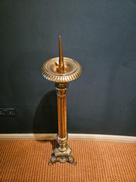 Early Victorian Pair of Floor Standing Brass Pricket Candlesticks
