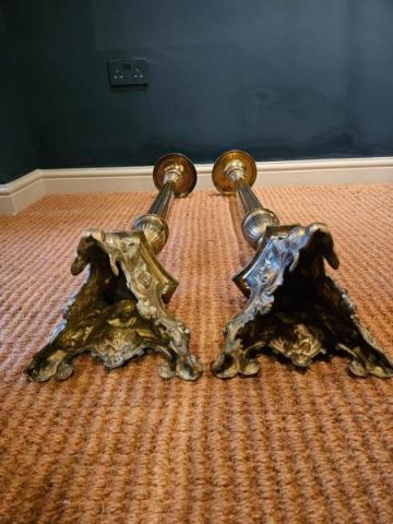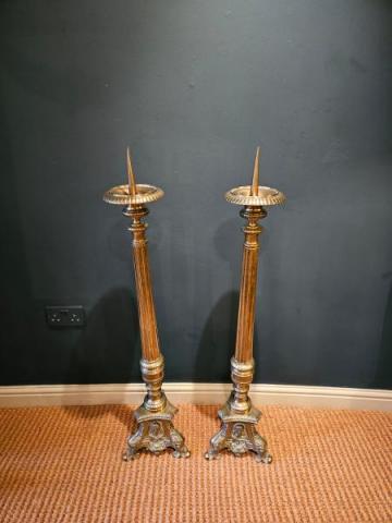 Antique Victorian Pair of Floor Standing Brass Pricket Candlesticks at Sturmans Antiques candlesticks for sale