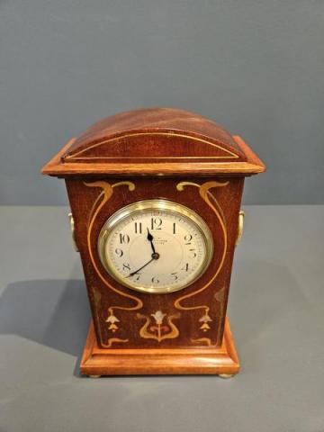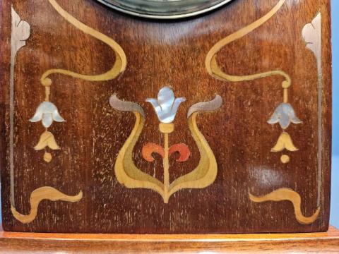 Antique Edwardian Art Nouveau Inlaid Mantel Clock French Movement