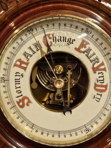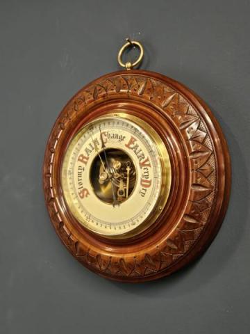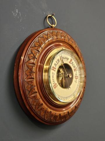 Antique Victorian Turned and Carved Mahogany Case Aneroid Barometer at Sturmans Antiques barometer for sale