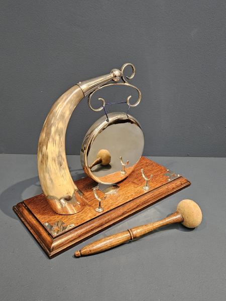 Antique Victorian Silver Plated and Cow Horn Dinner Gong at Sturmans Antiques dinner gong for sale
