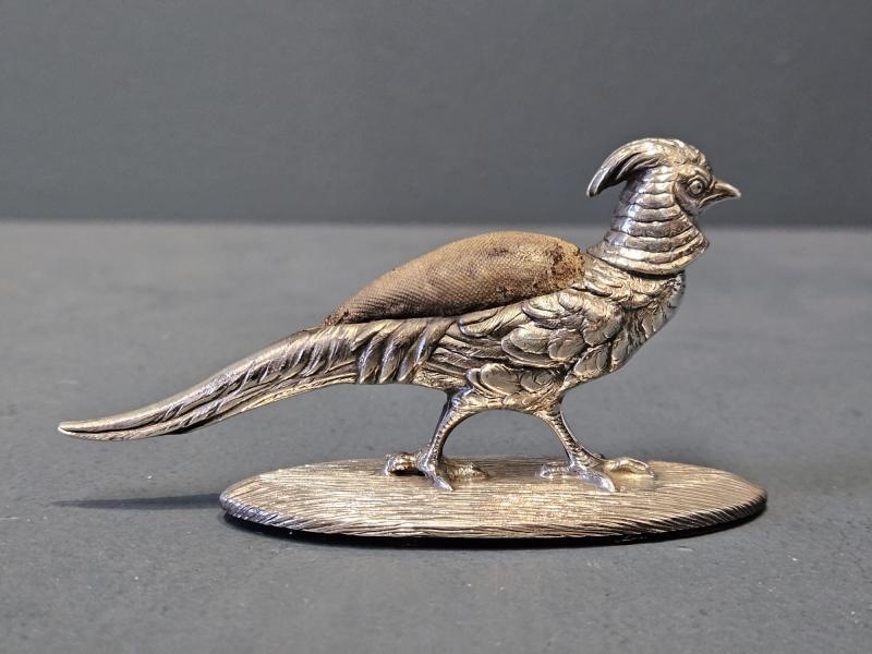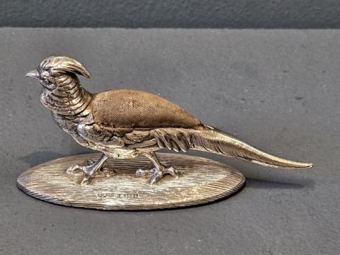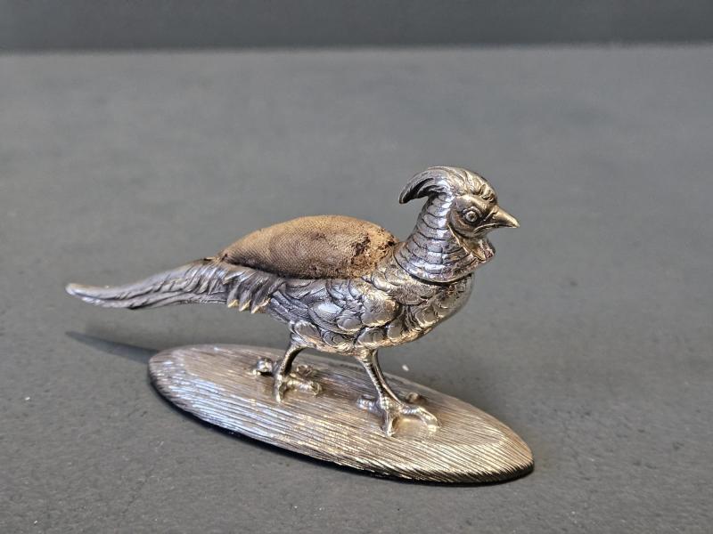 Rare Edwardian Sampson Mordan Silver Pheasant Pin Cushion