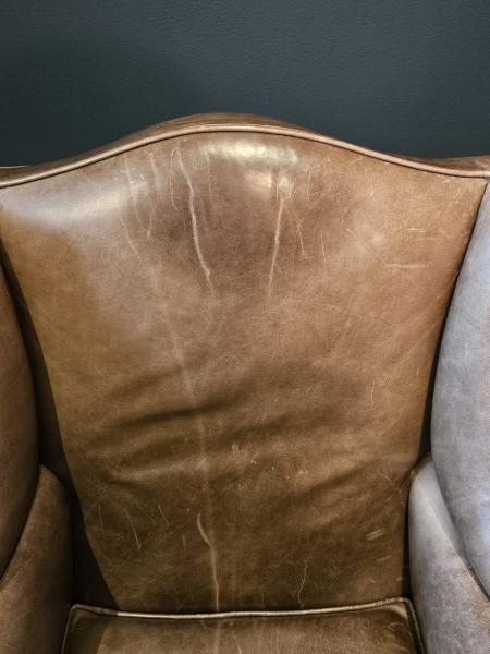 Antique Leather Arm Chair by Warings at Sturmans Antiques furniture for sale