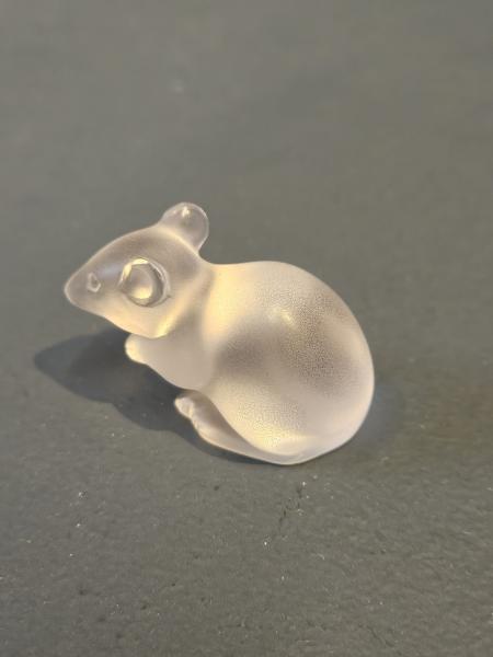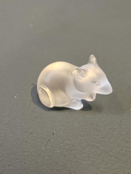 A rare Lalique opalescent mouse in mint condition, signed Lalique France to the base. The mouse sat on hind legs with curled tail to the side. Opalescent finish throughout with polished highlights. Signed Lalique France to the base and presented in immaculate perfect condition. Measures 1.75" x 1" deep x 1.25" high. Stock number 43275.